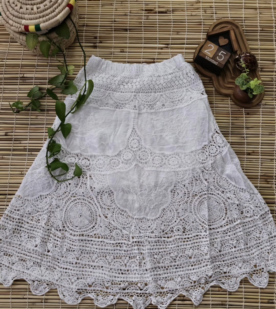 دامن قلاب بافی وارداتی زیبا موجودی فقط رنگ سفید سایز بندی از 36تا42 بسیار نرم و ظریف