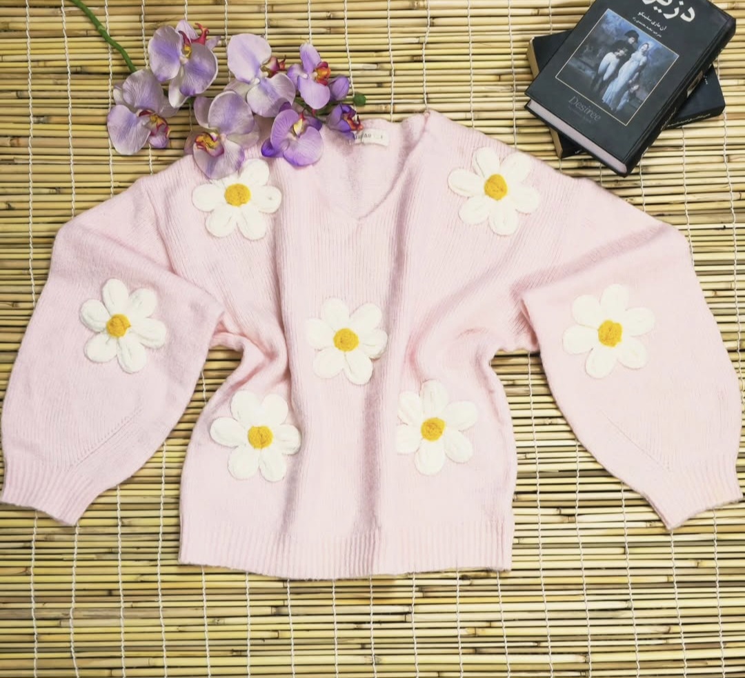 بافت صورتی با گل های برجسته